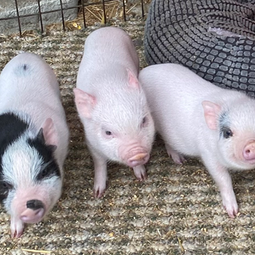 Putt Putt Pigs was founded by Carol Melvin along with her children-Anna, Morgan, and Trey-who turned Trey's childhood dream of having a pig into a beautiful reality upon moving to the farm. They have cultivated an excellent reputation for their integrity and for raising some of the most adorable mini pigs around. Prepare for delightful adventures at Pee Wee Fields!